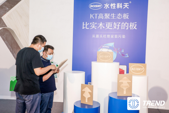水性科天KT高聚生態板顛覆傳統,集生態板、刨花板優勢于一身,產品擁有飾面效果好、不含甲醛、合格率高、造型豐富、硬度高、強度高、平整度好、耐水耐熱性好、易加工等諸多優勢,一舉解決傳統膠合板產品痛點,是家具行業更新替代產品。此次水性科天KT高聚生態板亮相中國定制家居產業峰會備受行業關注,彰顯了核心競爭力。